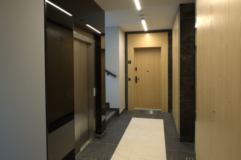 - łazienki wyposażone w stelaże podtynkowe do spłuczek oraz odpływy liniowe w kabinach prysznicowych